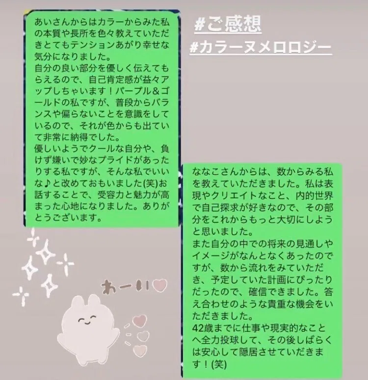 数秘の他、古来より伝わる四柱推命、易経、さらにカラーの理論をも織り交ぜ、総合的に鑑定いたします。